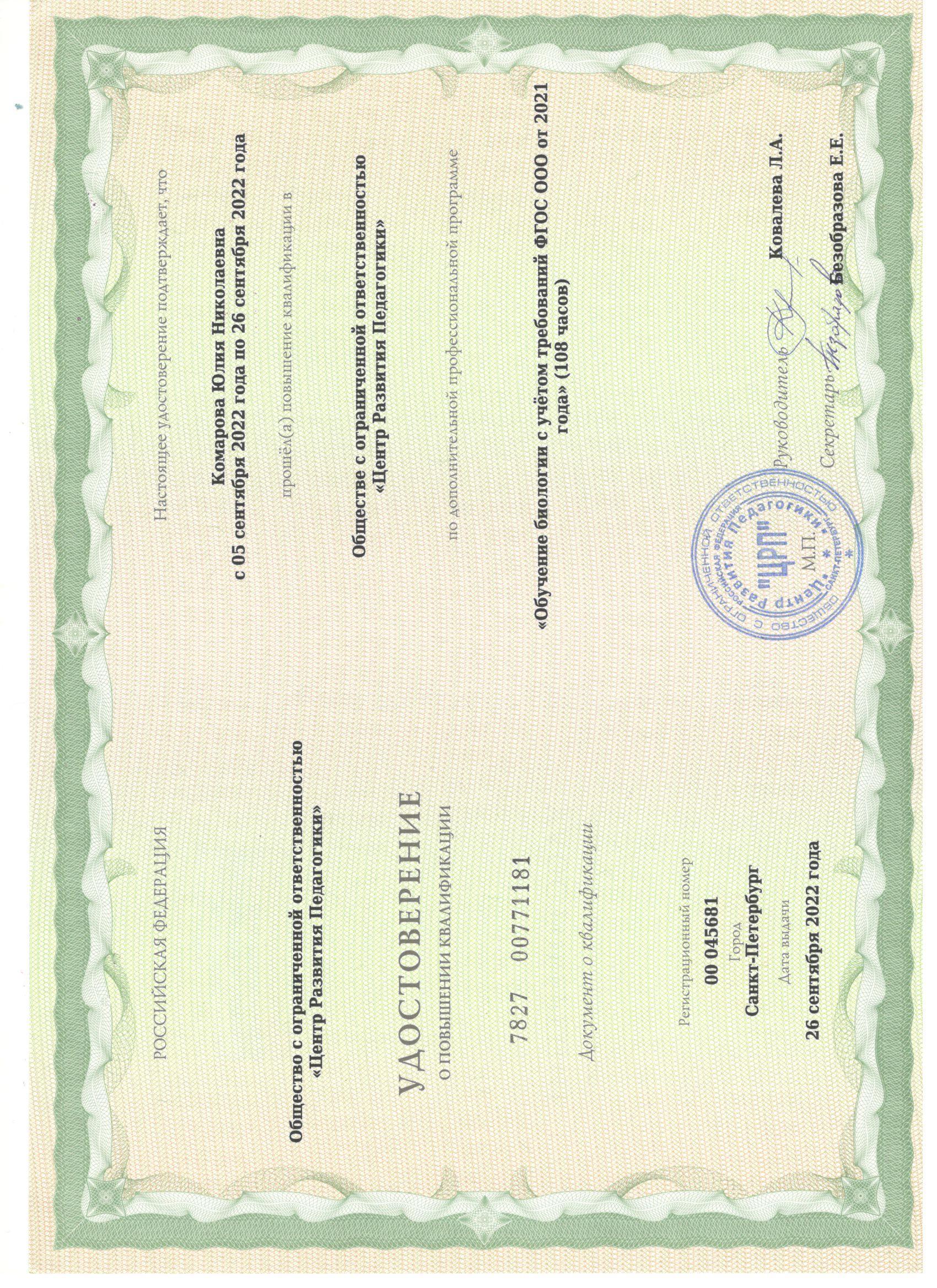 Комарова Юлия Николаевна
