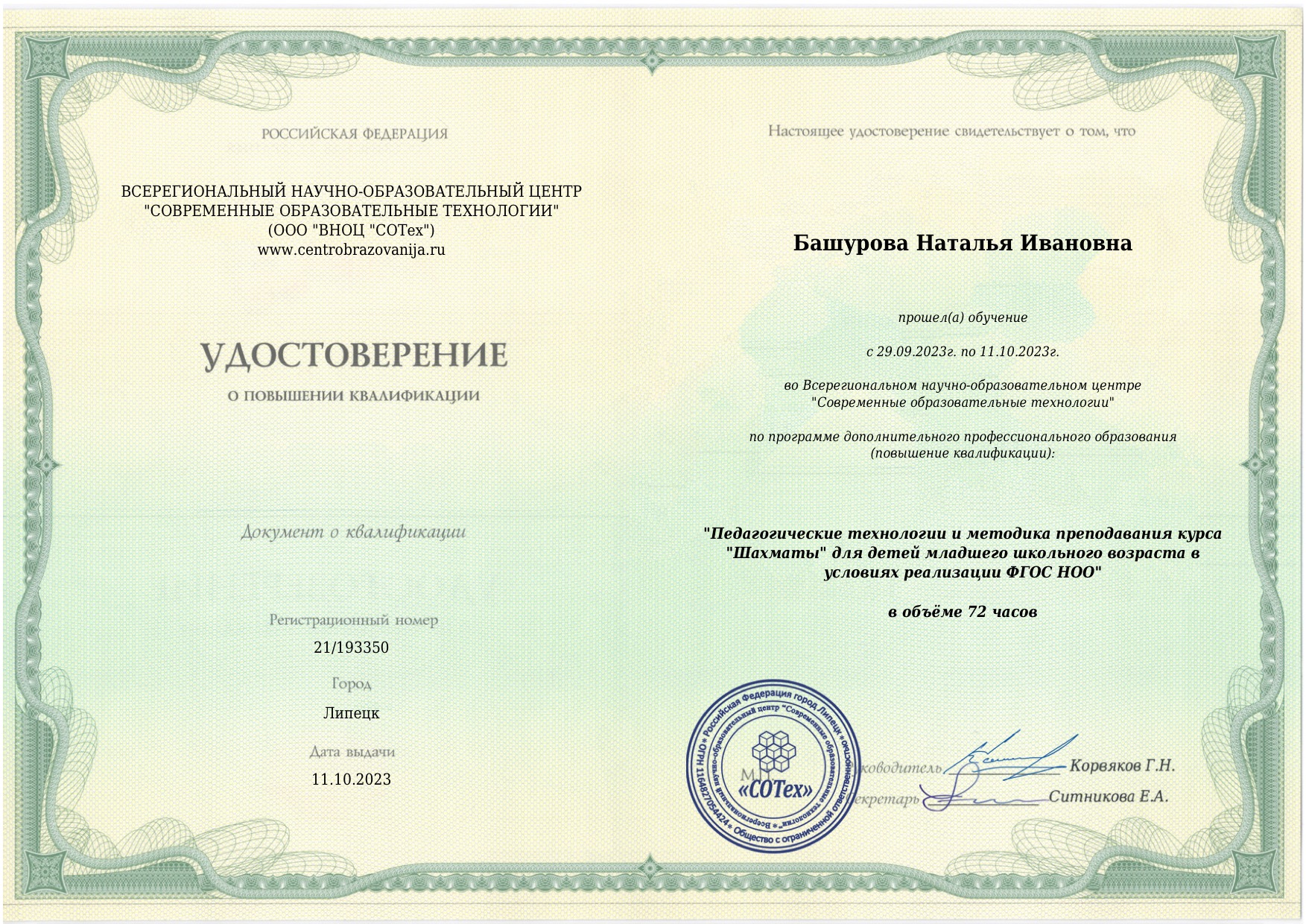 Башурова Наталья Ивановна